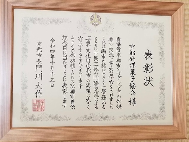 2021年に開催しました京都・ザグレブ市(クロアチア共和国)姉妹都市提携40周年記念特別表彰に京都市から招待されました。